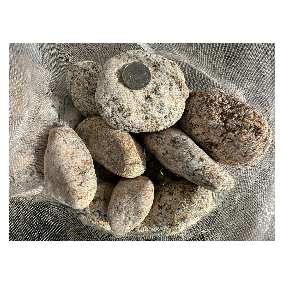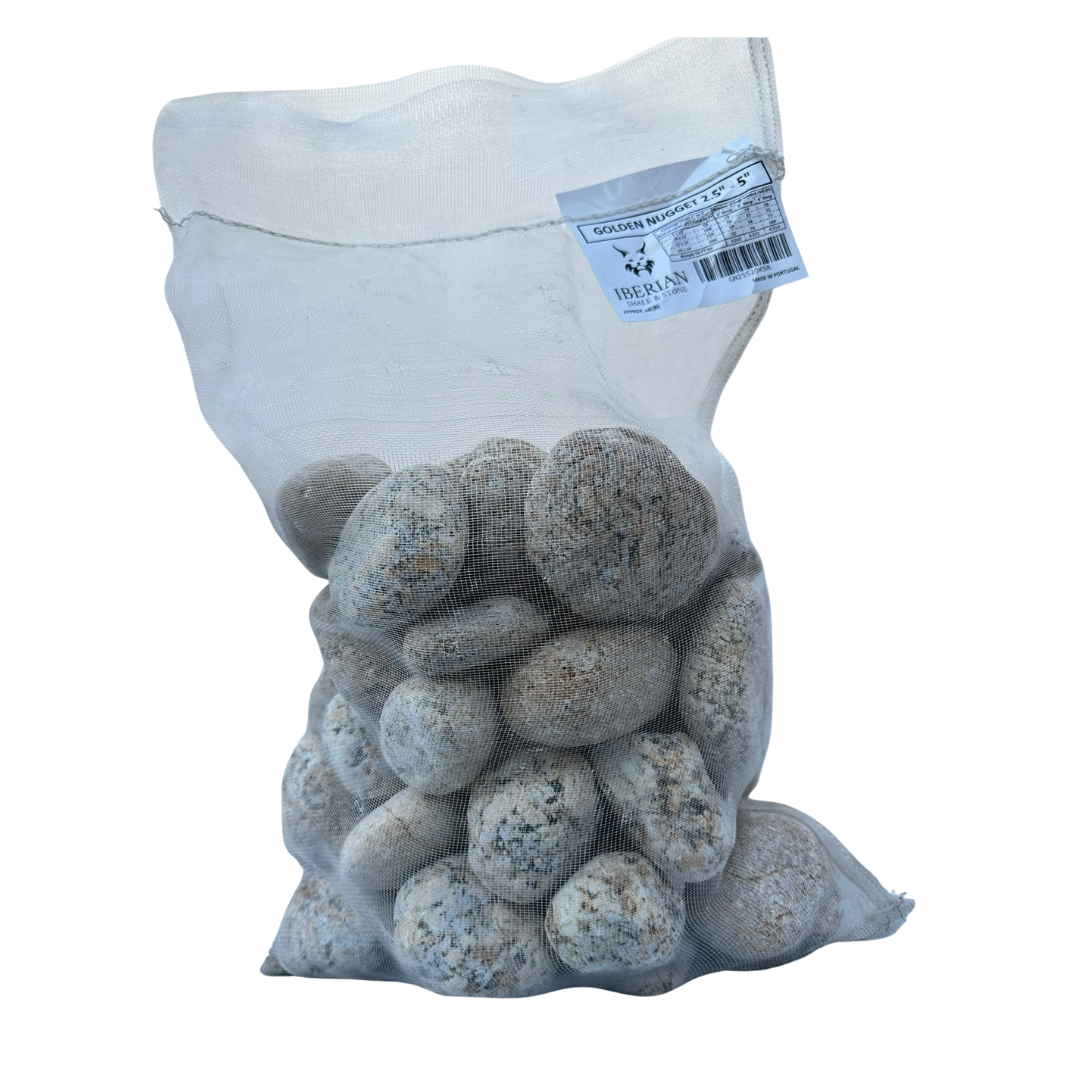 Introducing our exquisite Golden Nugget Pebble, a premier choice for natural landscaping stones. Imported directly from Portugal, these pebbles are crafted from yellow European granite, known for its durability and vibrant color. Each pebble is meticulously hand-picked and expertly tumbled to achieve a smooth, polished texture, making them an ideal addition to any garden or outdoor space. Our Golden Nugget Pebble not only enhances the aesthetic appeal of your landscape but also embodies the timeless beauty and strength of natural stones. Transform your garden into a stunning masterpiece with these exceptional natural landscaping stones.